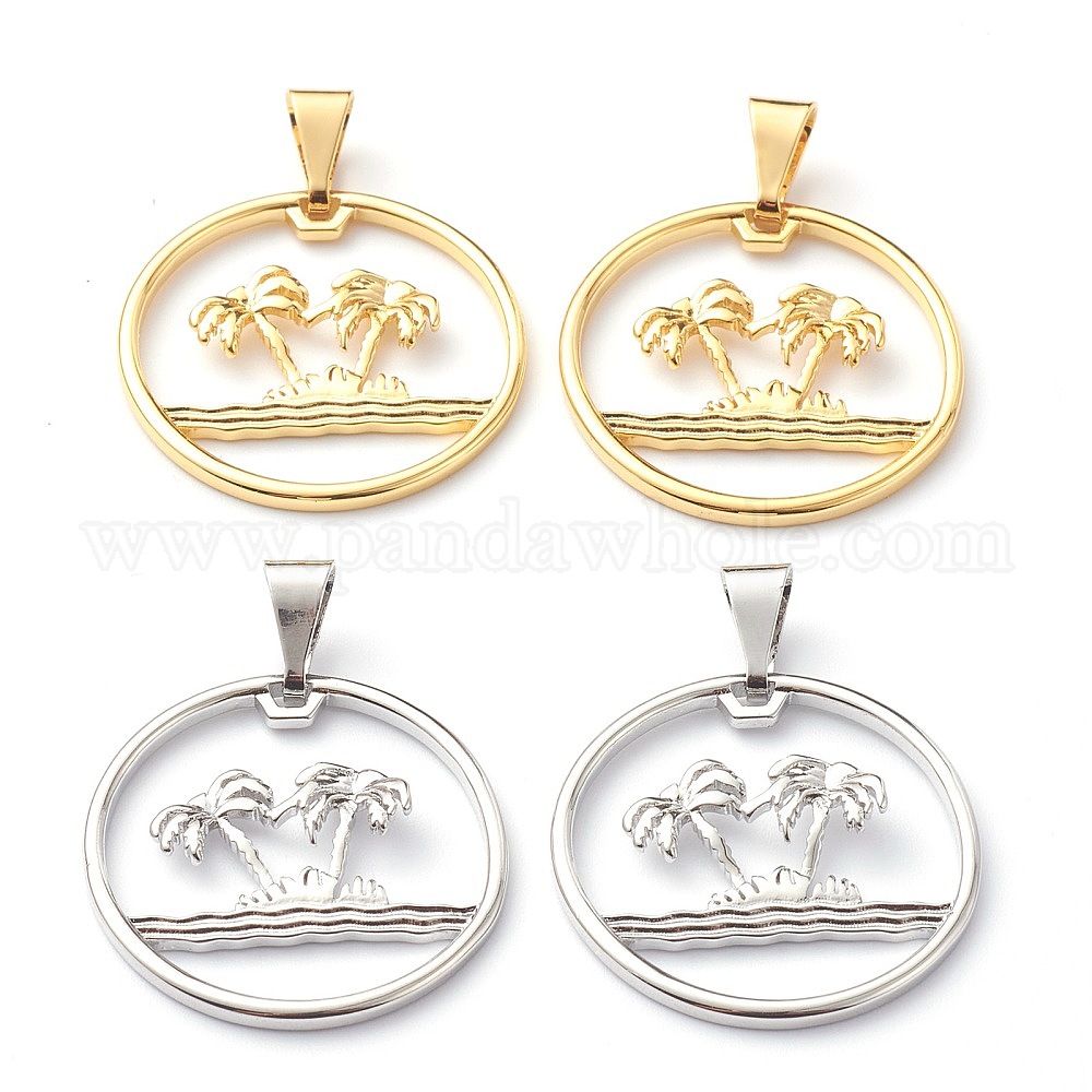 Латунные подвески, долговечный, плоский круглый с пальмой