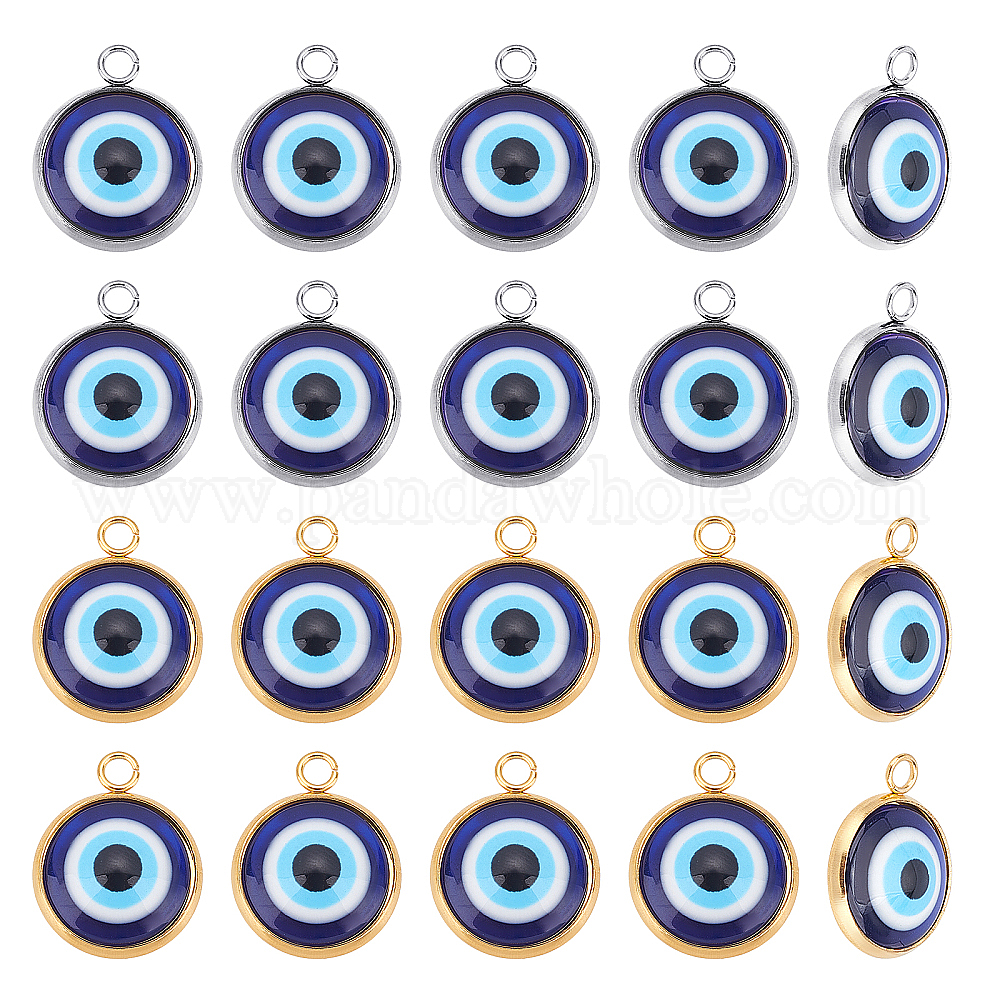20 шт 2 цвета подвески из смолы, с настройками из 304 нержавеющей стали, черный и синий сглаз