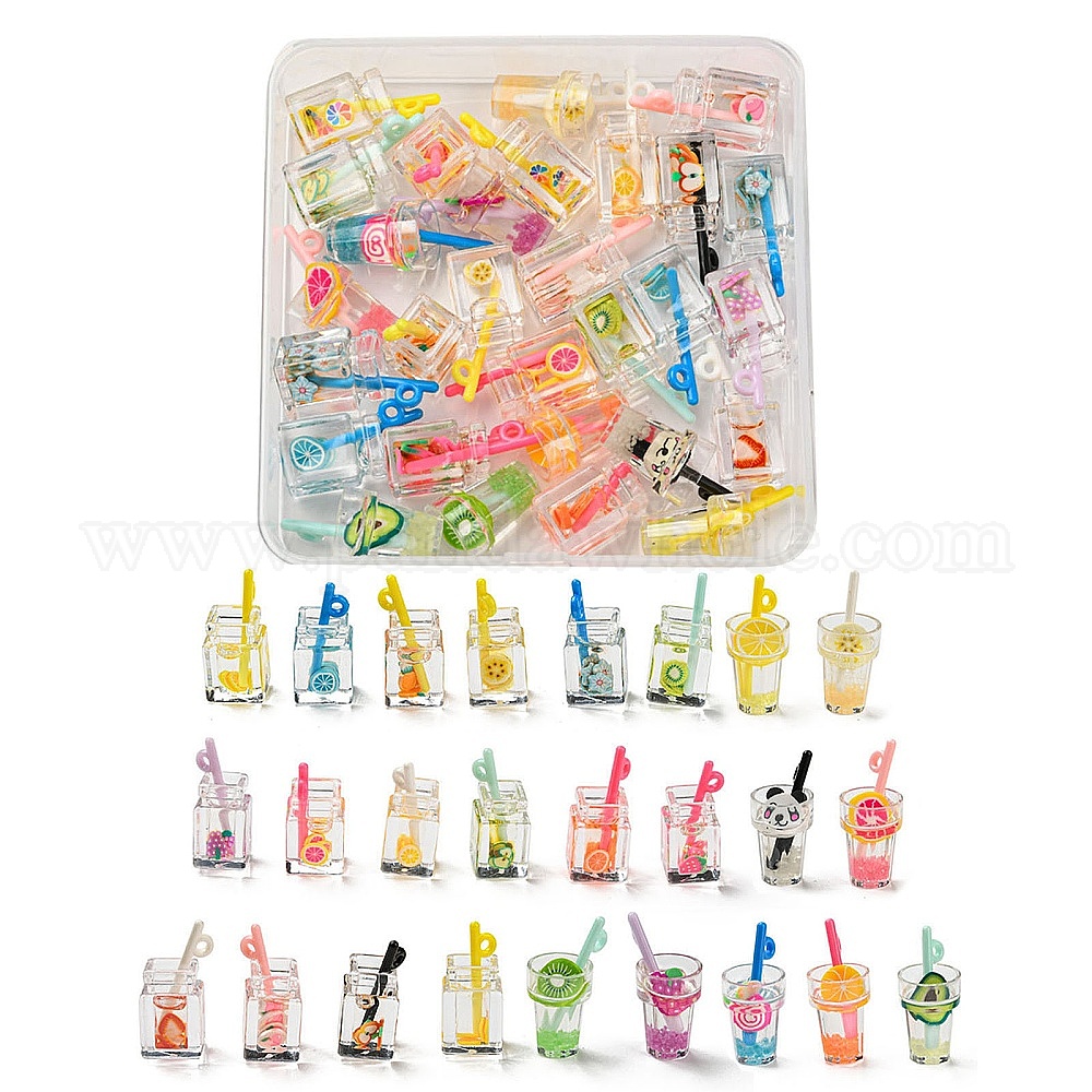 50 шт. 25 кулон из смолы, имитирующий напиток, Полимерная глина внутри, с акриловой бутылкой или чашкой