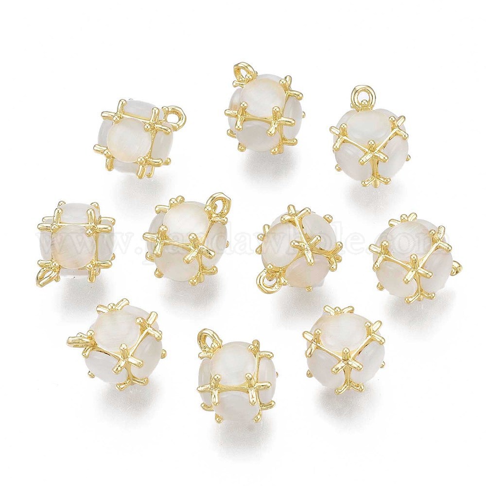 Кремово-белые подвески из смолы с имитацией кошачьего глаза, с реечной обшивкой латунными выводами, без никеля , круглые