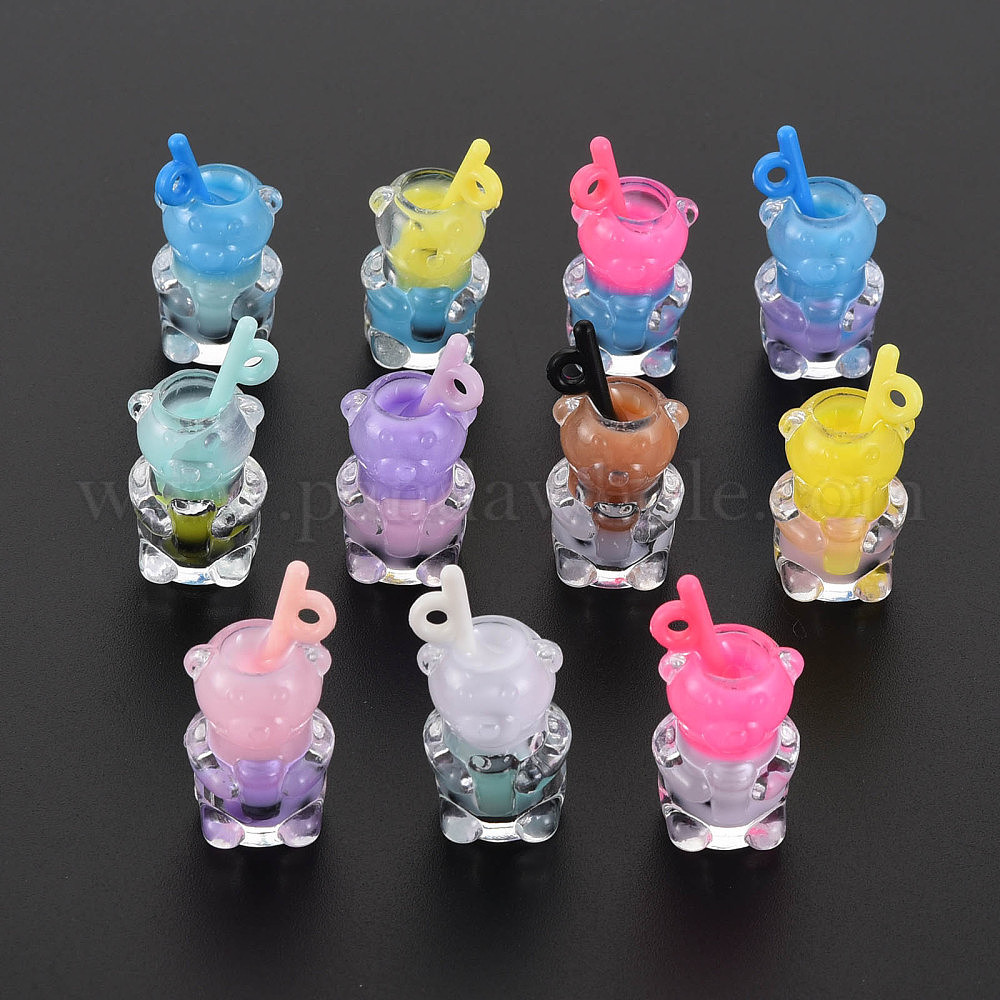 Подвески из смолы, с полимерной глиной внутри, имитация пузырчатого чая, с акриловой чашкой, медведь