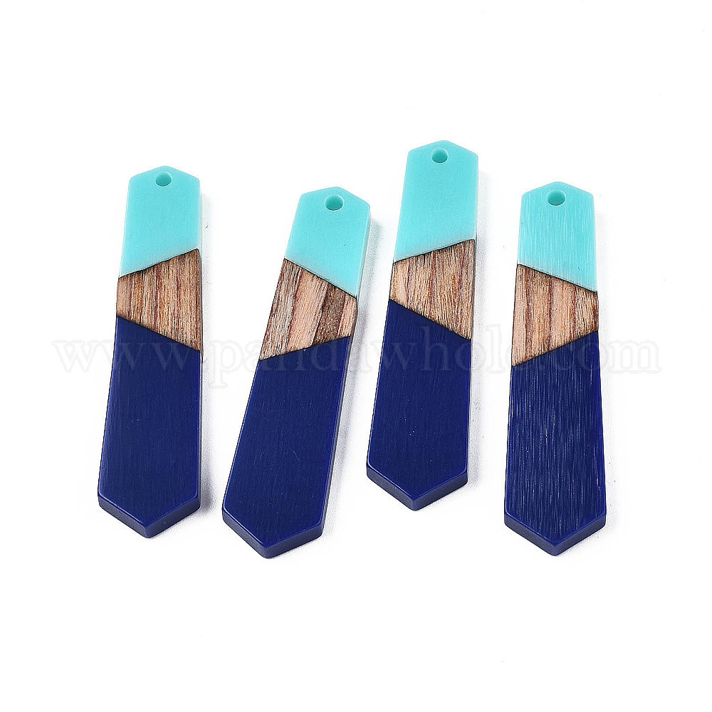 • Полуночно-синий Подвески из непрозрачной смолы и ореха, полигон прелести, темно-синий, 49.5x12.5x4 мм, отверстие : 2 мм