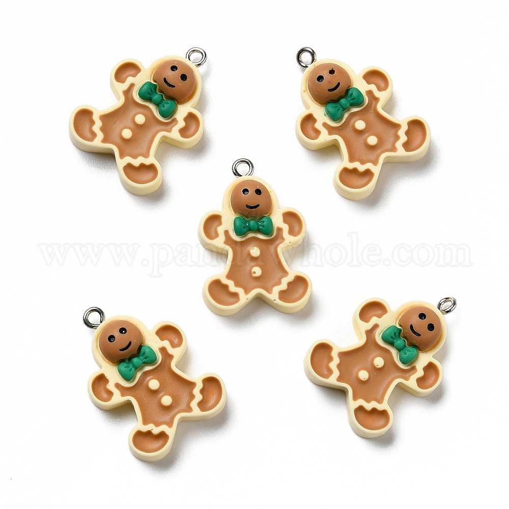 • Сиена Непрозрачные подвески смолы, с платиновыми тоновыми железными петлями, Новогодняя тема, Колобок, цвет охры, 28.5x20x5 мм, отверстие : 2 мм