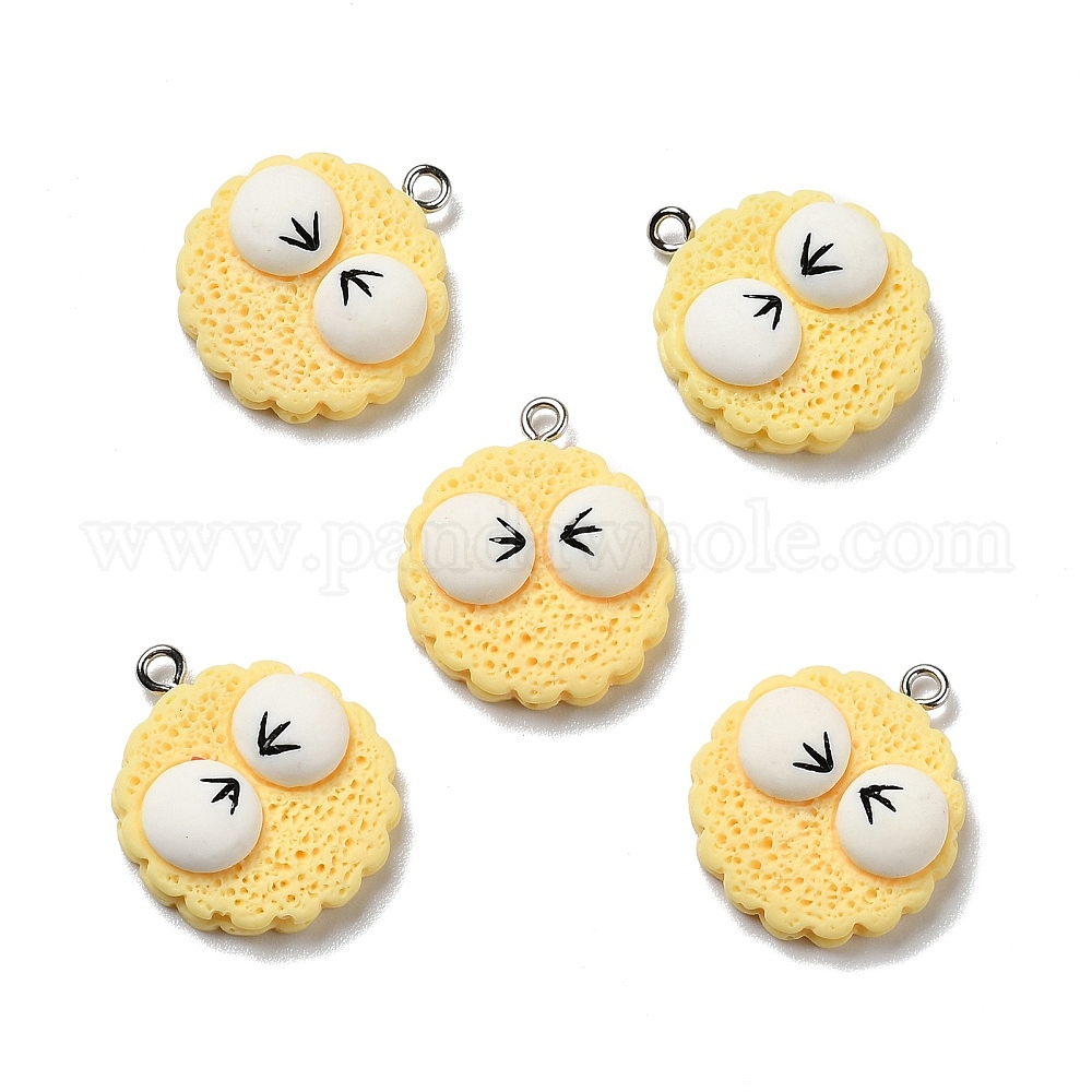 Непрозрачные подвески смолы, с платиновыми тоновыми железными петлями, имитация еды, печенье с глазками