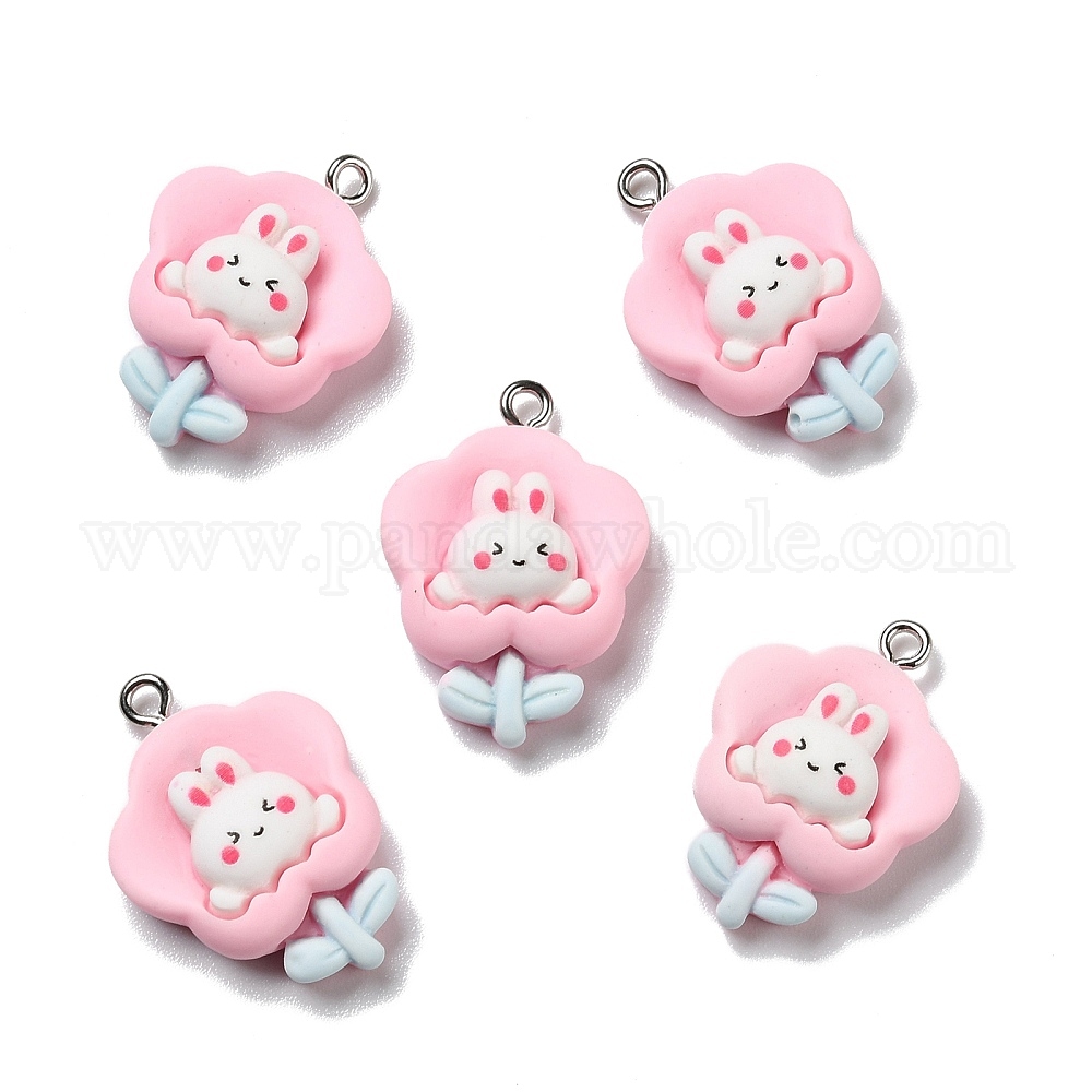 Непрозрачные подвески смолы, с платиновыми тоновыми железными петлями, цветок с кроликом
