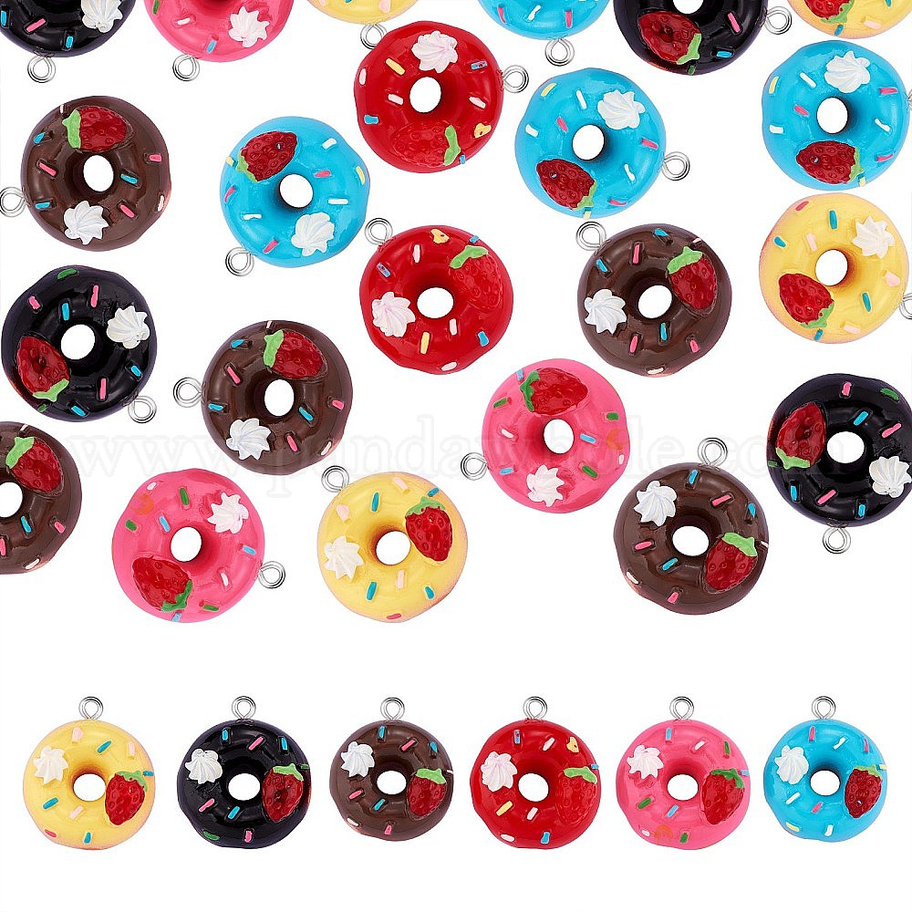 • (52) Непрозрачная лаванда 30 шт 6 цвета подвески из непрозрачной смолы, с платиновыми тоновыми железными петлями, пончик с клубникой, разноцветные, 25x22x13.5 мм, отверстие : 2 мм, 5 шт / цвет
