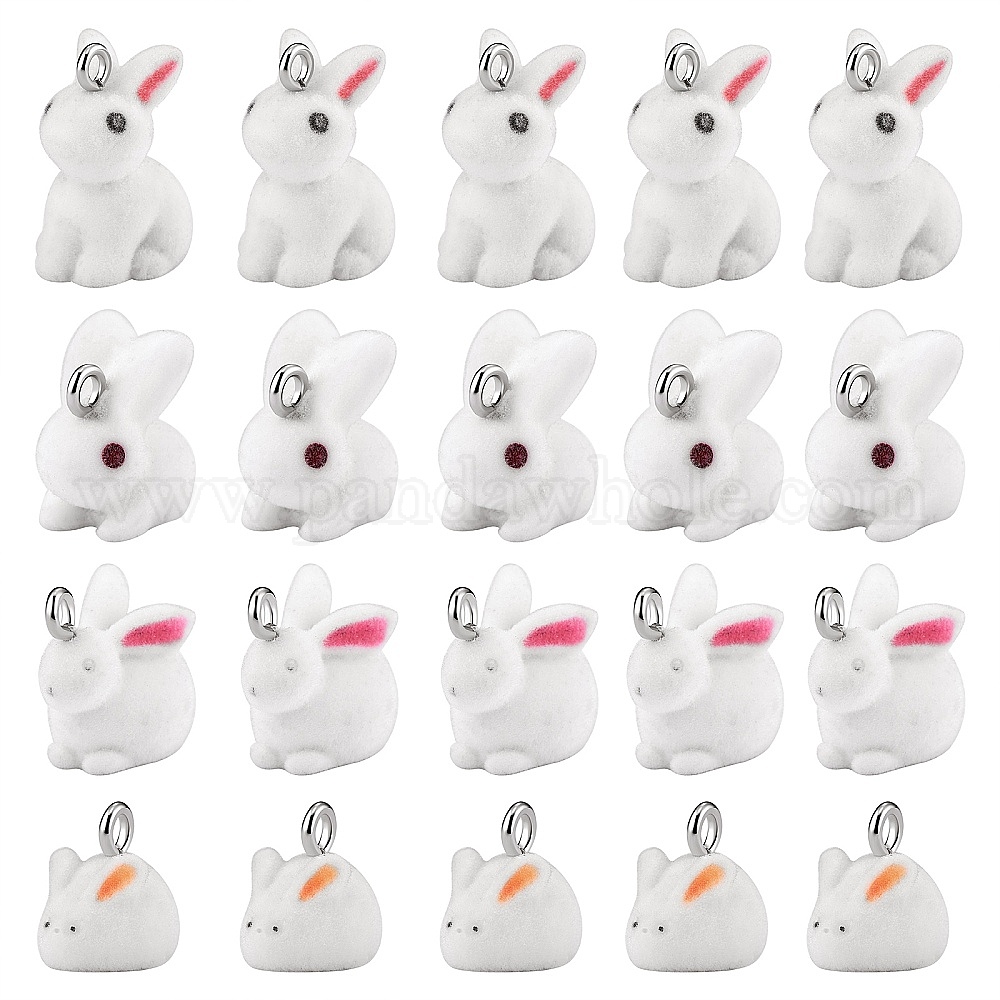 20ppc 4 стильные подвески из флокированной смолы, с платиновыми железными петлями, очарование кролика