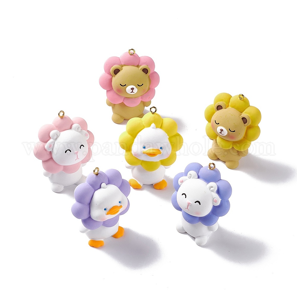 Непрозрачные ПВХ пластиковые большие подвески, с золотыми тонами железных петель, животное очарование, узор медведь/овца/утка (02ET1R)