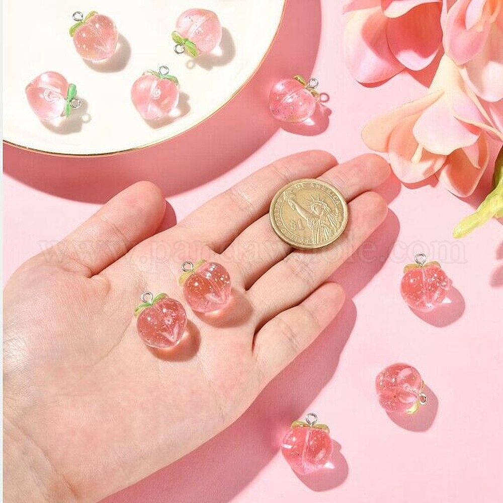 Прозрачные смоляные подвески, персик прелести, с платиновыми тоновыми железными петлями