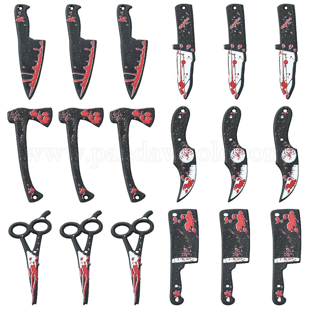 12шт 6 стилей непрозрачной смолы хэллоуин готические подвески ужасов, кровавый нож/топор/ножницы, для изготовления ювелирных серег