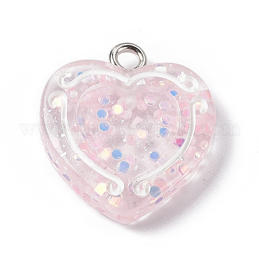 Прозрачные смоляные подвески, с платиновыми тоновыми железными петлями, подвеска-сердечко с блестящей пудрой и пайеткой