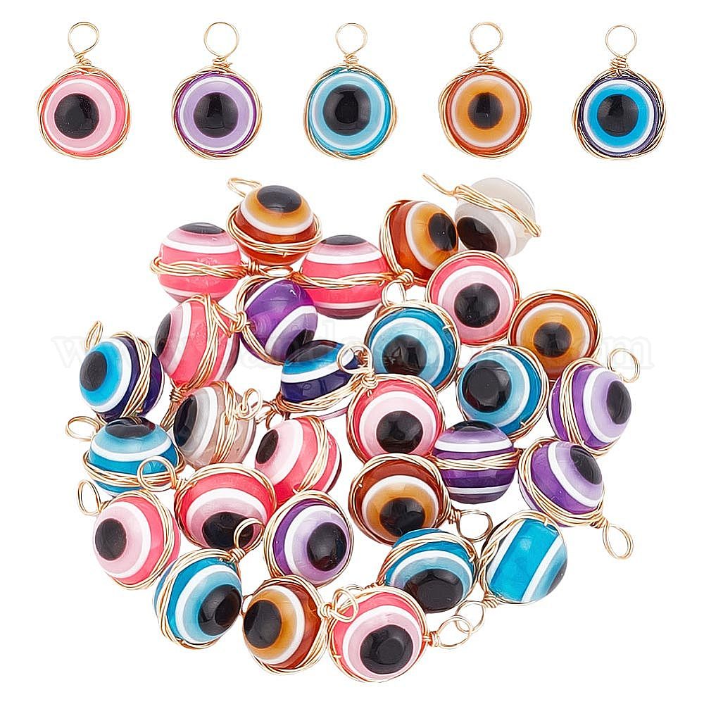 30 кулоны из смолы, Злые чары глаз, с настоящей позолоченной экологически чистой медной проволокой, обернутой