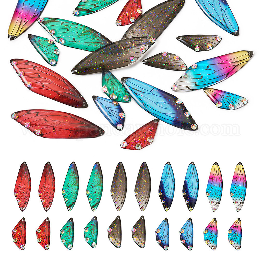 5 комплекты 5 цветные подвески из прозрачной смолы, подвески в виде крыльев с блестящей пудрой и стразами