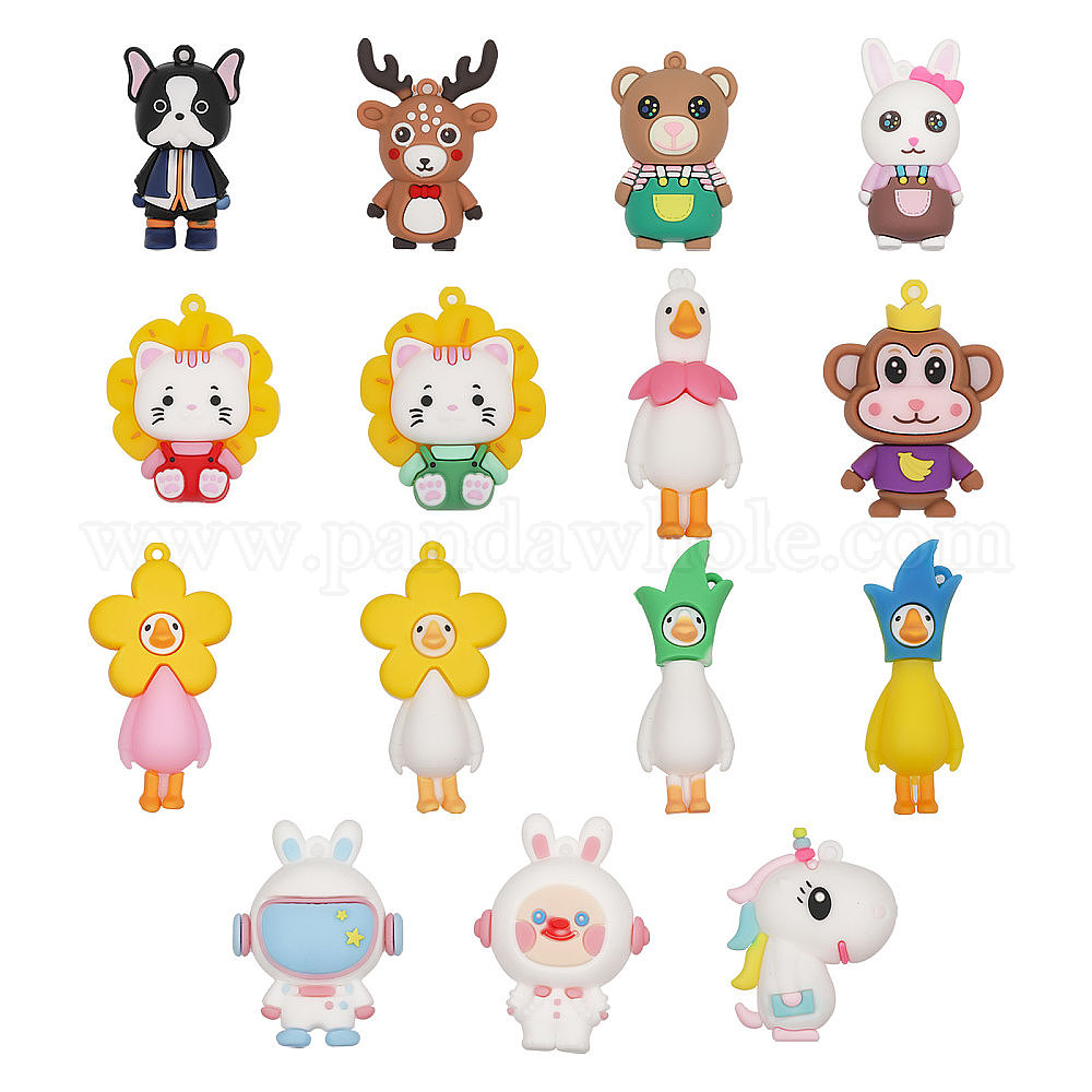 15шт 15 стили непрозрачная смола большие подвески, прелести животных, бульдог и утка и медведь, разнообразные (02HQRR)