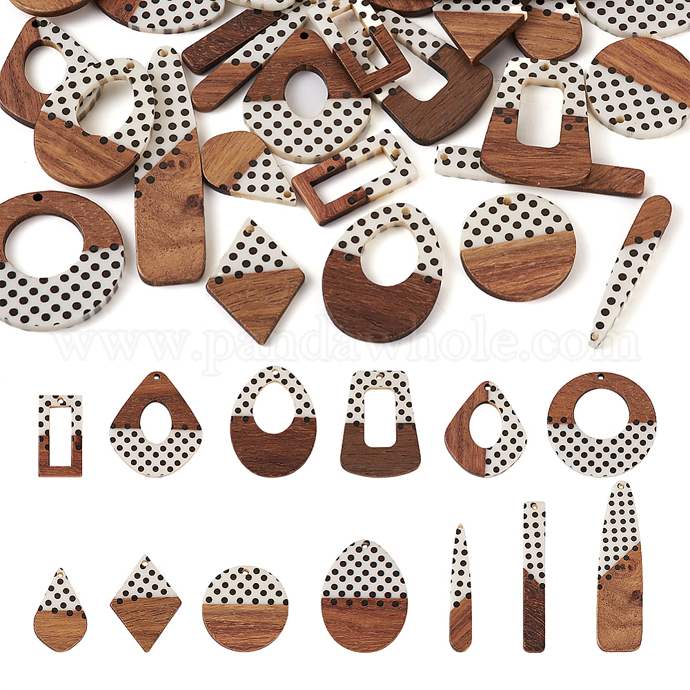 26 шт. 13 стильные подвески из непрозрачной смолы и орехового дерева с принтом, геометрические подвески в горошек, разнообразные