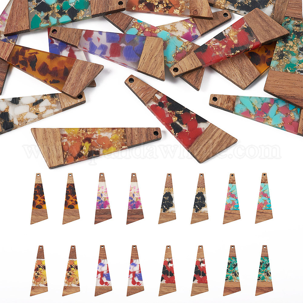 16шт 8 цвета прозрачная смола и большие подвески из орехового дерева, двухцветная, трапециевидные подвески с золотой фольгой