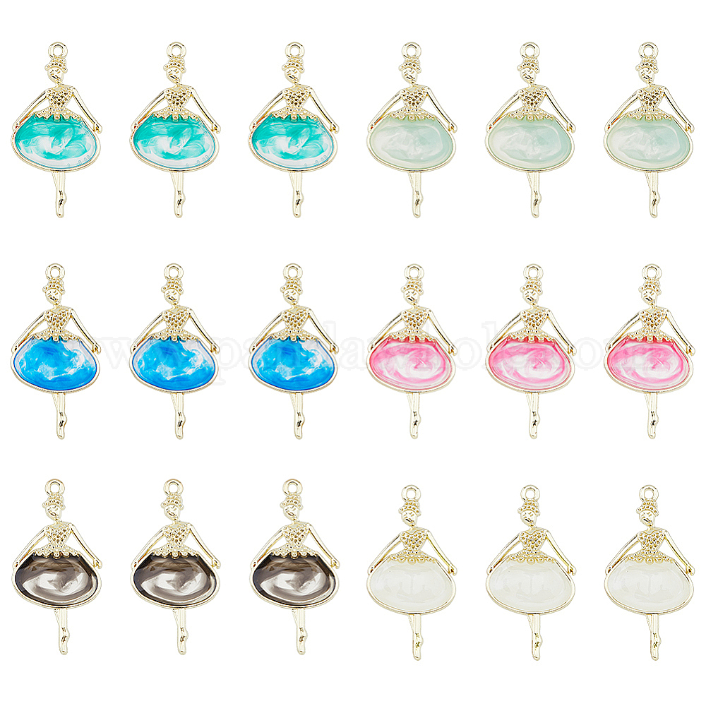 24шт 6 цвета эпоксидная смола большие подвески, очарование балерины, с реечным покрытием из сплава светло-золотистого цвета с открытой задней панелью, без кадмия, без никеля и без свинца
