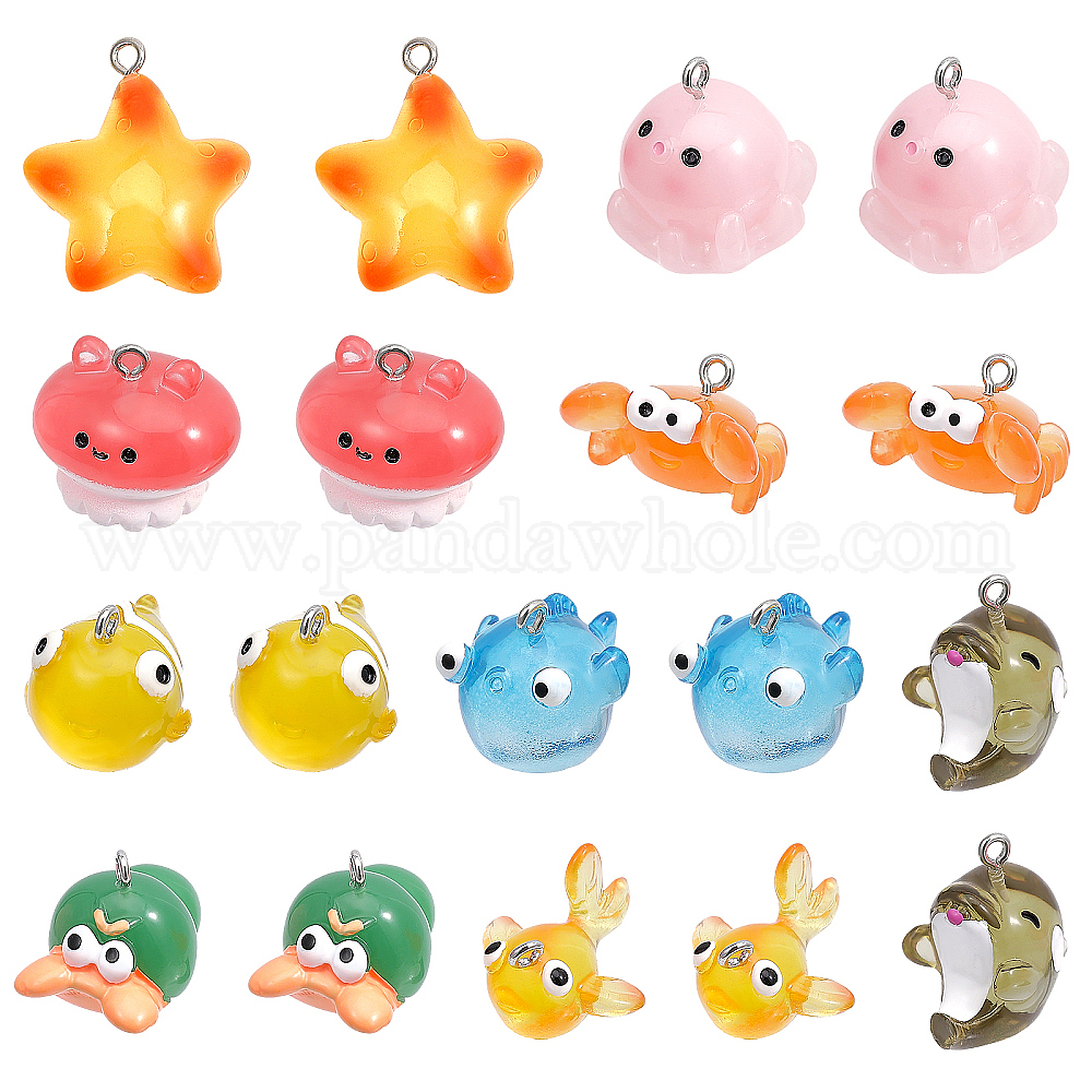 18 шт 9 стили морская серия полупрозрачные подвески из смолы, с платиновыми железными петлями, разнообразные