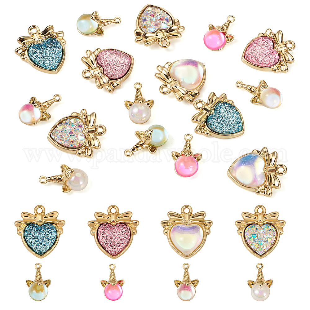16 шт 8 стили подвески из смолы, с выводами светло-золотой тон сплава, подвески в виде сердца и единорога