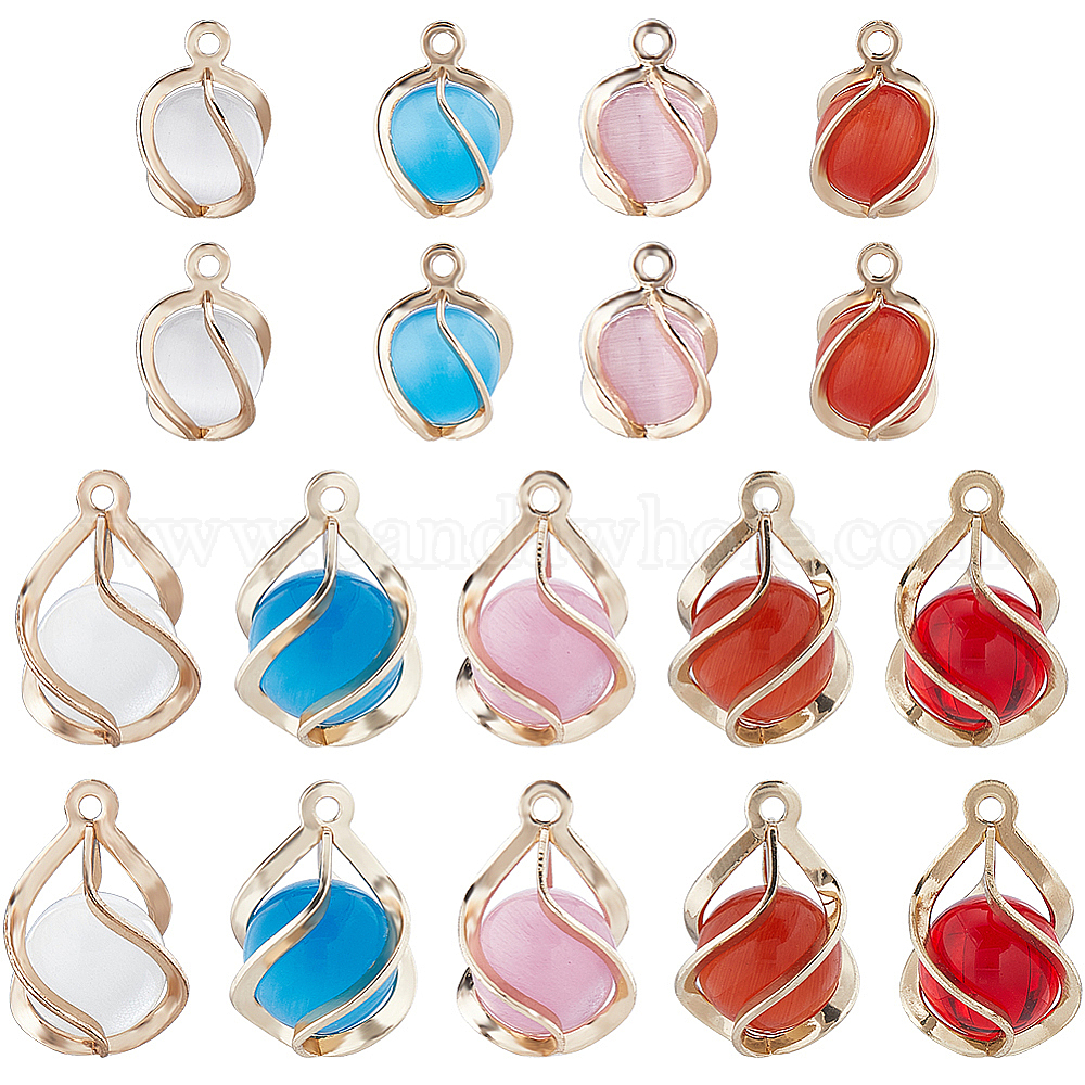 18шт 9 стили имитация смолы кошачий глаз подвески, слезинки, с легкой позолоченной латунной фурнитурой