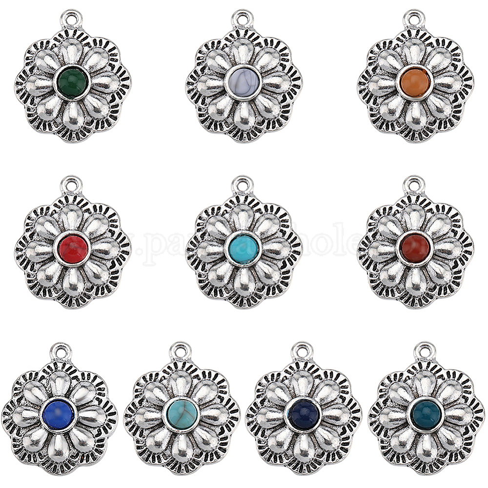 20шт 10 цвета смолы подвески с имитацией драгоценных камней, , с фурнитурой из цинкового сплава с антикварным посеребрением