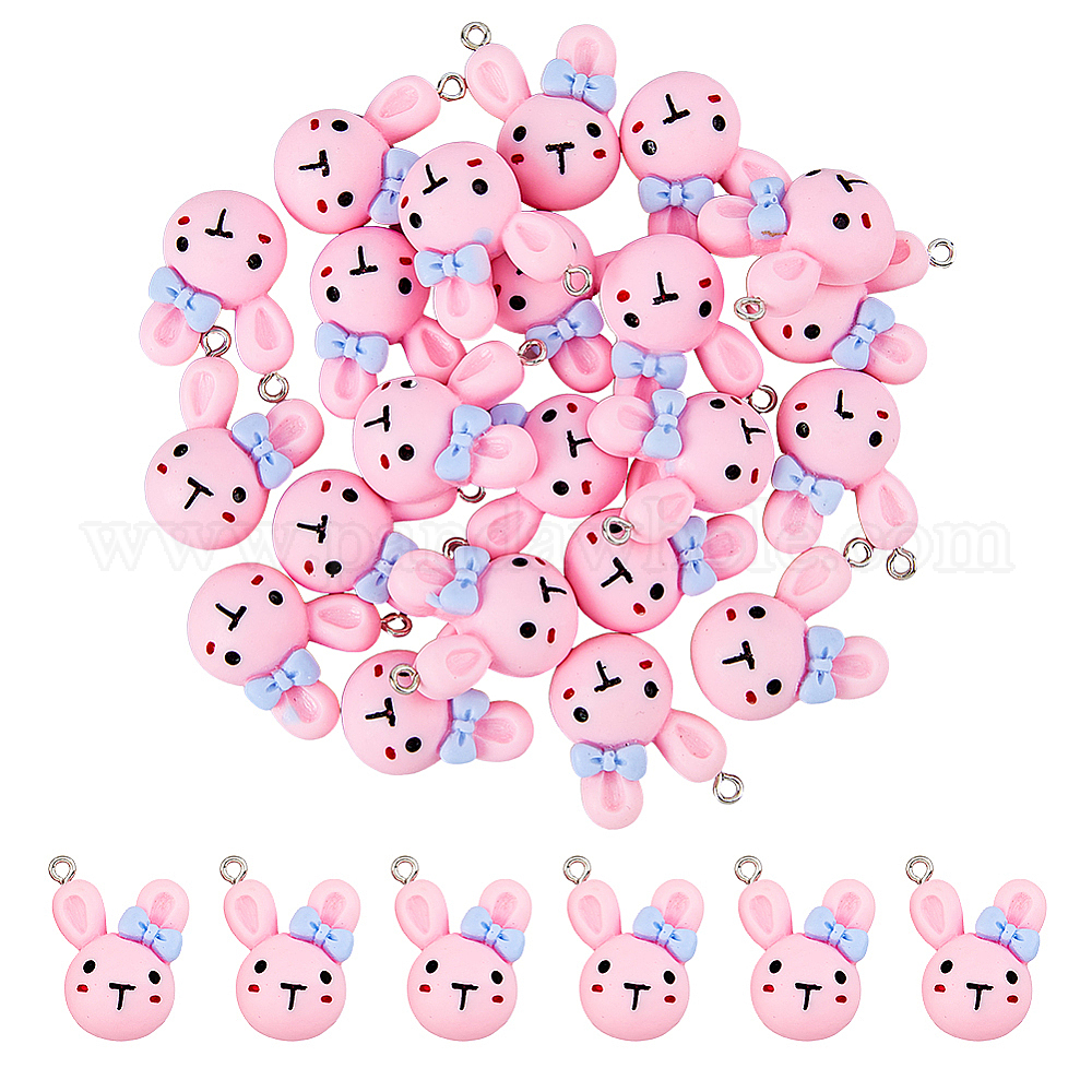 30подвески из непрозрачной смолы, Подвески в виде головы кролика с петлями из платинового железа