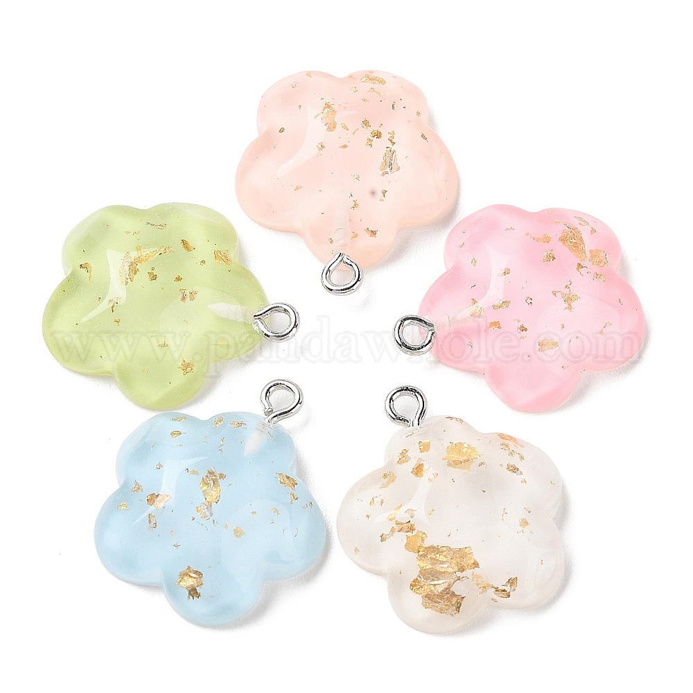 Подвески из полупрозрачной смолы, с золотой фольгой и железными петлями с платиновым покрытием, разноцветные