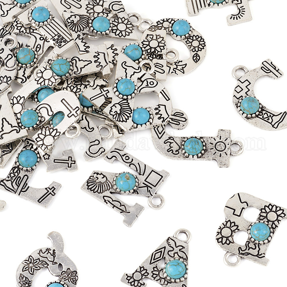 26шт 26 стили подвески с буквами из сплава с имитацией смолы синтетической бирюзы, письмо амулеты
