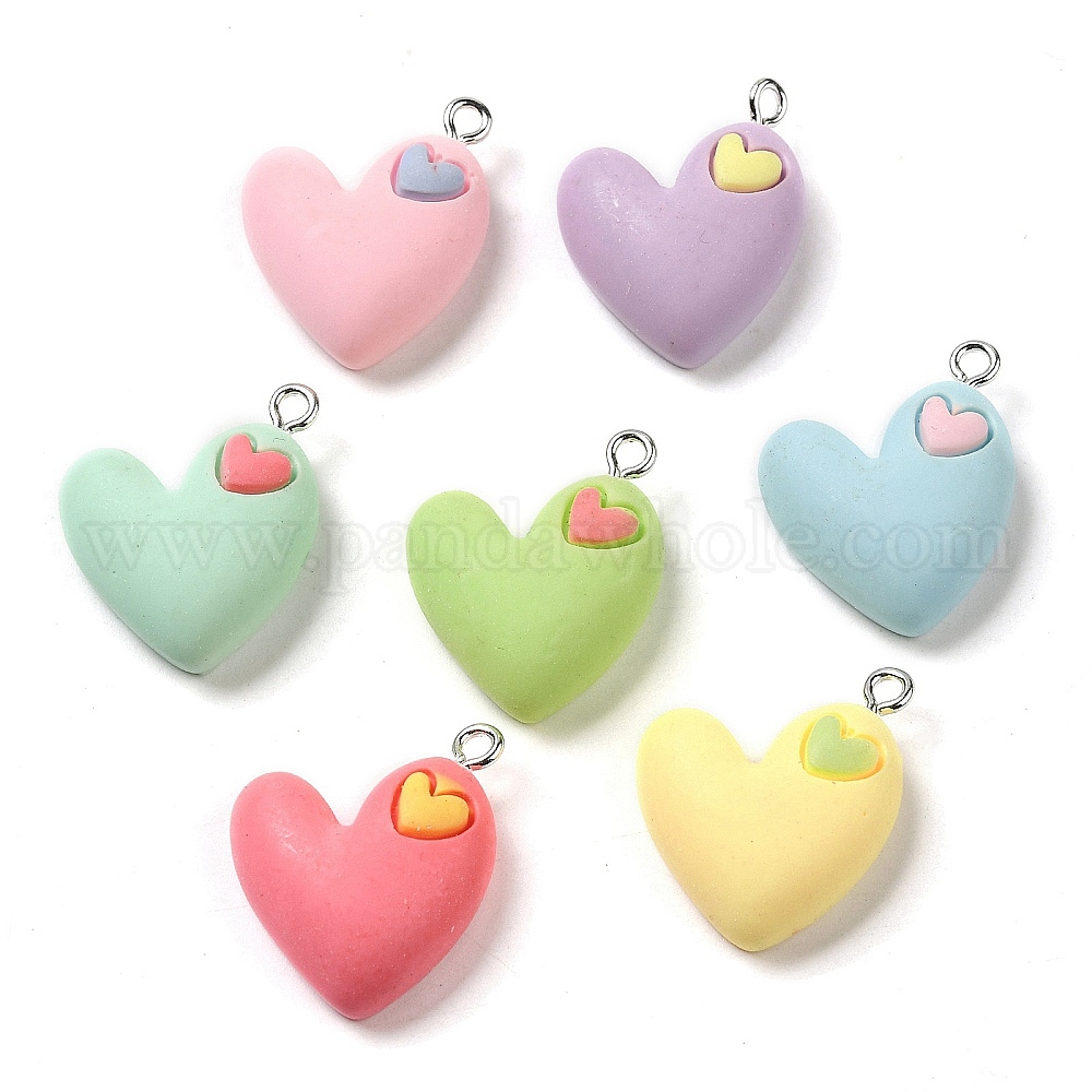 • (52) Непрозрачная лаванда Непрозрачные подвески смолы, Подвески-сердечки с железными петлями с платиновым покрытием, разноцветные, 24x19x8 мм, отверстие : 2 мм