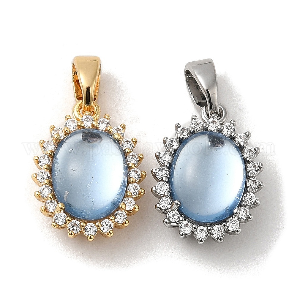 Овальные подвески из латуни с микропаве и прозрачным фианитом, cmолой (02QK9K)
