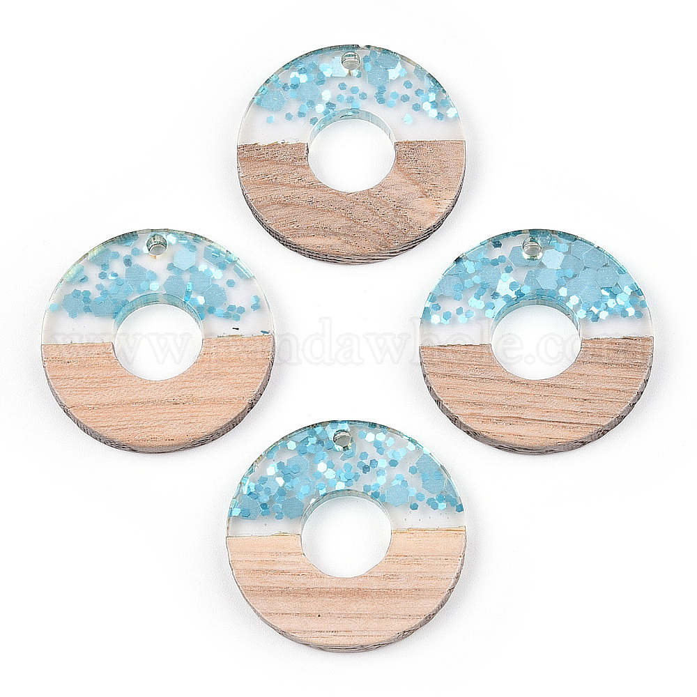 Подвески из прозрачной смолы и белого дерева, подвески-диски пончик/пи с пайетками