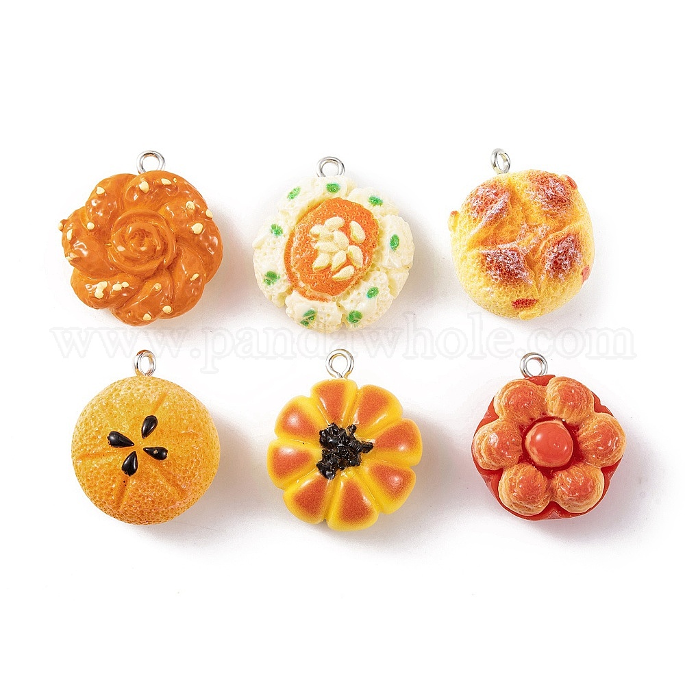 Кулон с имитацией еды из смолы, Хлебные брелоки с железными петлями с платиновым покрытием (02SX9R)