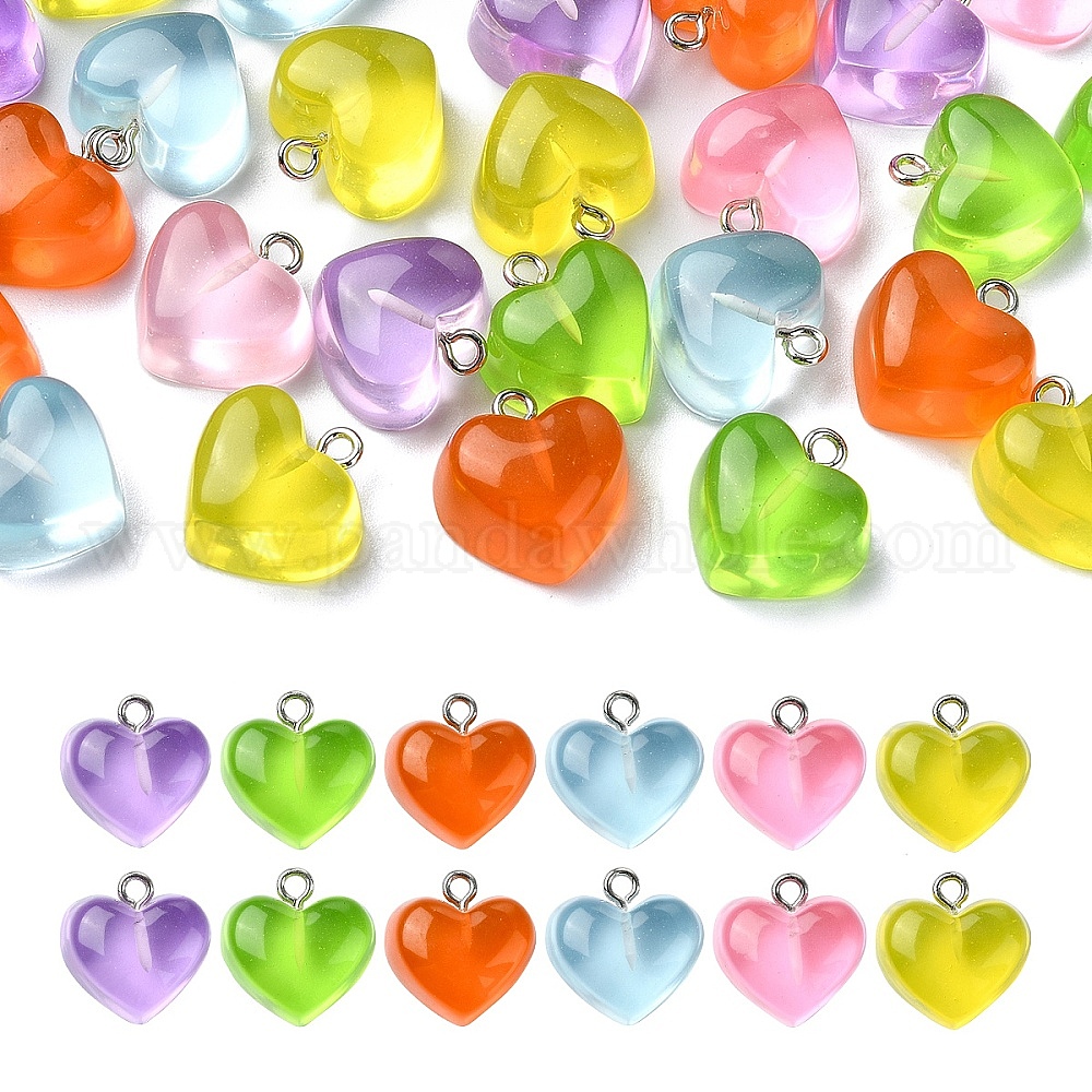 30 шт 6 цвета прозрачные подвески из смолы, с платиновым тоном железная петля, сердце (02T3RC)