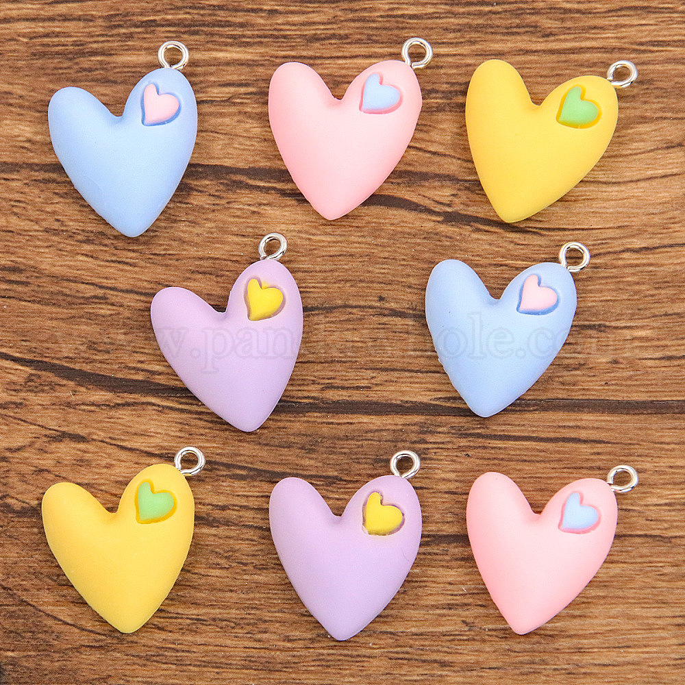 • (52) Непрозрачная лаванда Подвески из смолы, с металлической петлей, шарма сердца, разноцветные, 25x18 мм