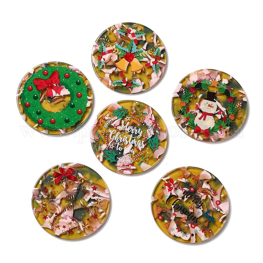 Прозрачные рождественские подвески из ацетата целлюлозы (смола), плоские круглые прелести