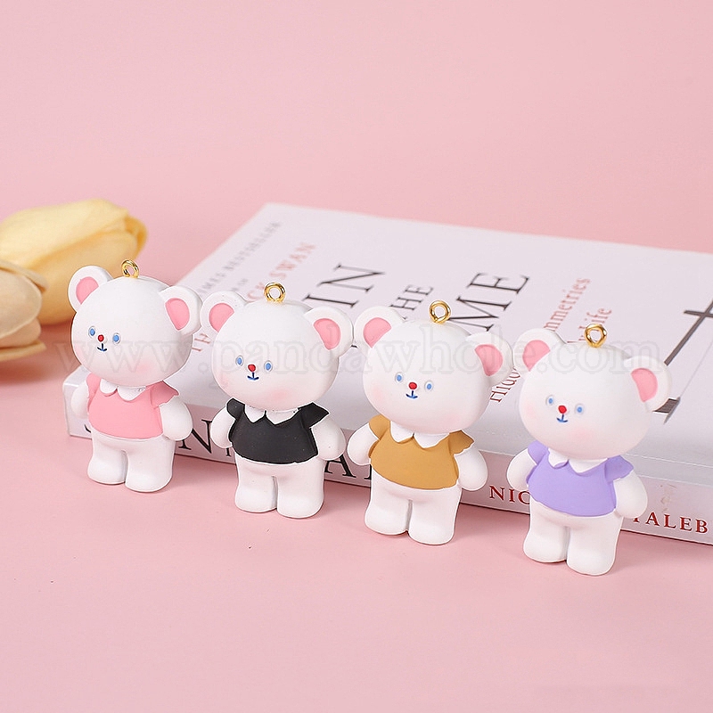• Pink Большие подвески из непрозрачной смолы, с золотыми тонами железных петель, медведь, розовые, 56x38 мм