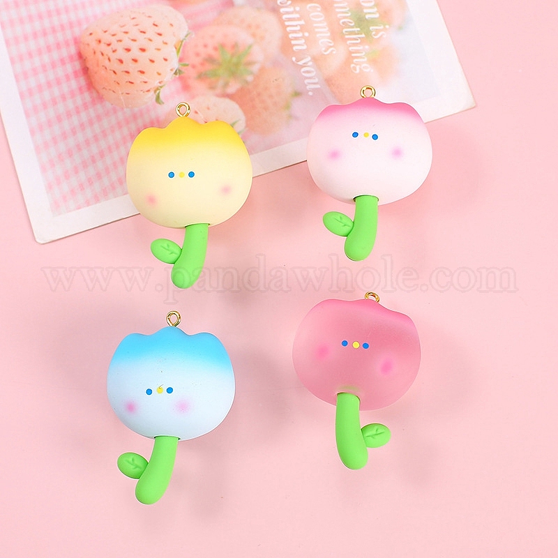 Большие подвески из непрозрачной смолы, с золотыми тонами железных петель, цветок