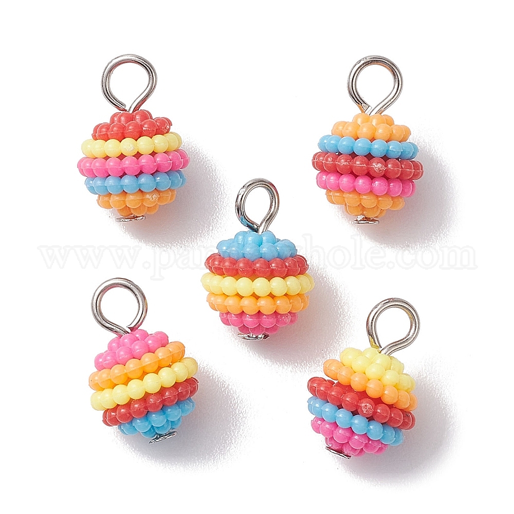 Круглые подвески из смолы цвета радуги, восковые ягоды, с железными петлями платинового цвета