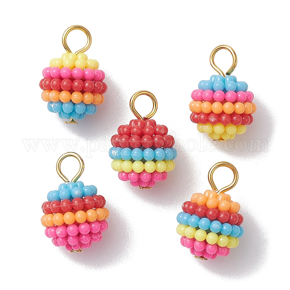 Подвески из восковой ягоды из смолы цвета радуги, круглые подвески с золотистыми железными петлями