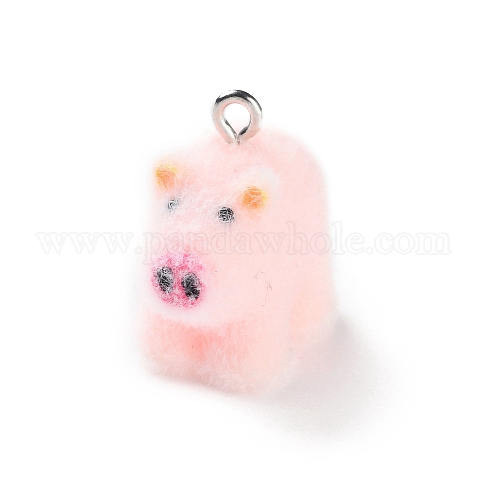 • Pink Кулоны из флокированной смолы, свинья, розовые, 19.5x20.5x10.5 мм, отверстие : 1 мм