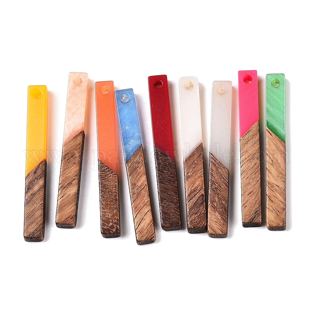 • (52) Непрозрачная лаванда Подвески из эпоксидной смолы и орехового дерева, прямоугольные, разноцветные, 39.5x4.5x3.5 мм, отверстие : 2 мм