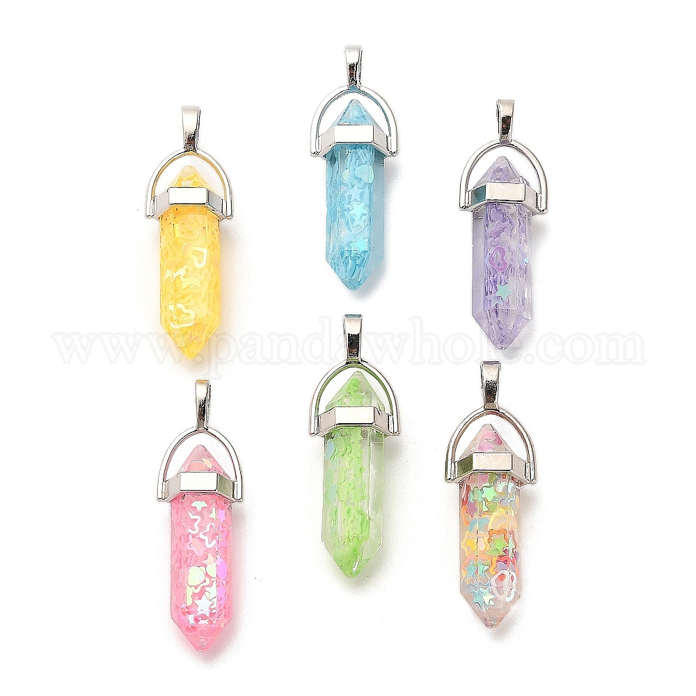 Эпоксидная смола подвески, с блестящими пайетками внутри и фурнитурой из сплава, граненые, форма пули
