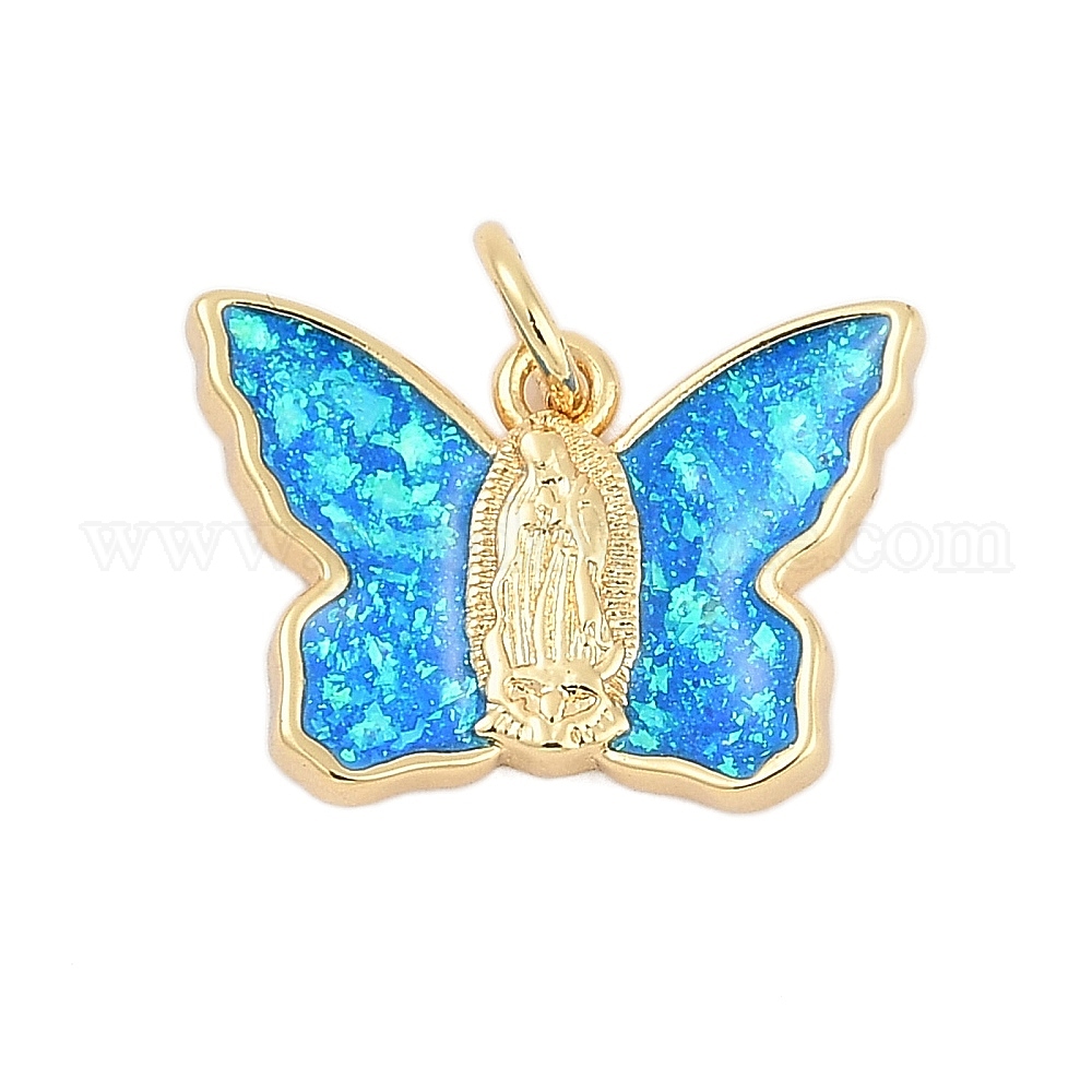 Бабочки медные подвески, с синтетическим опалом, долговечный, стойки покрытие, без свинца и без кадмия, глубокое синее небо