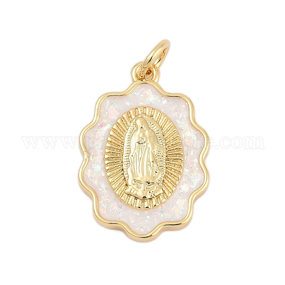 Латунные подвески, с синтетическим опалом, долговечный, стойки покрытие, без свинца и без кадмия, овальные с рисунками " virgin mary", белые