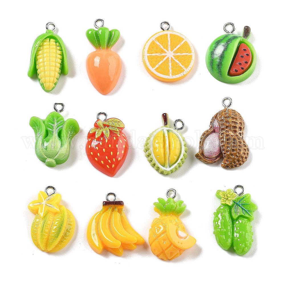 • Mixed Shapes Непрозрачные подвески смолы, имитация овощей и фруктов, с платиновым тоном железная петля, разнообразные, 20~28.5x14~20x3~7.5 мм, отверстие : 2 мм