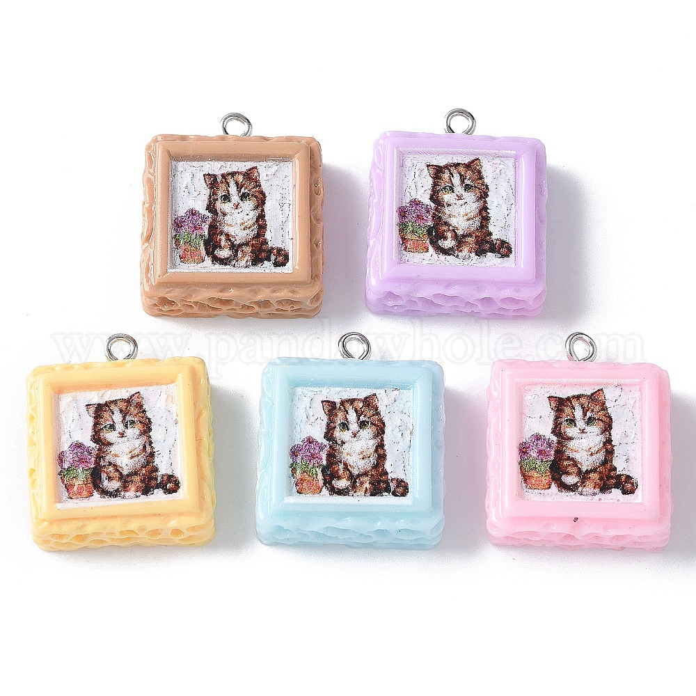 Непрозрачные подвески смолы, квадрат с кошачьими подвесками, с платиновыми железными петлями