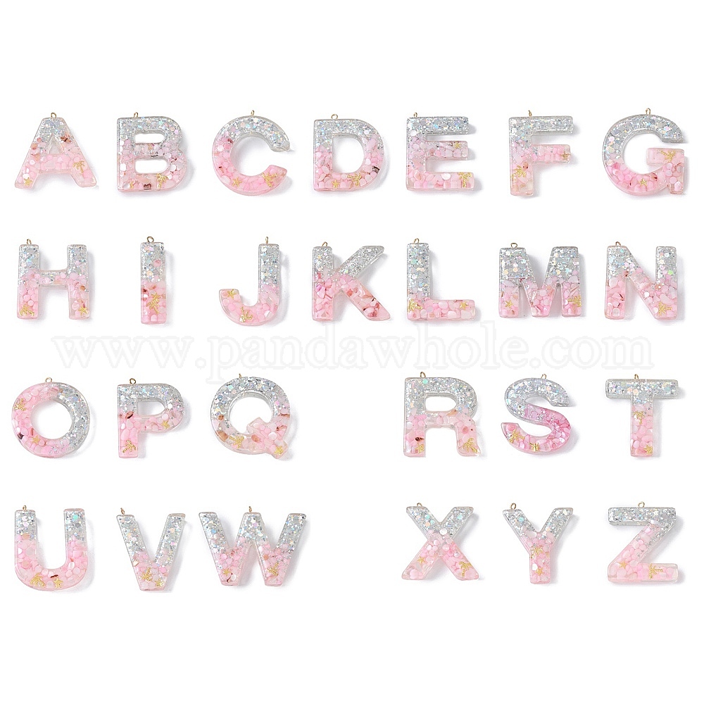 Подвески из смолы, с ракушкой, пайетками и петлей из сплава глодена, буква а~б