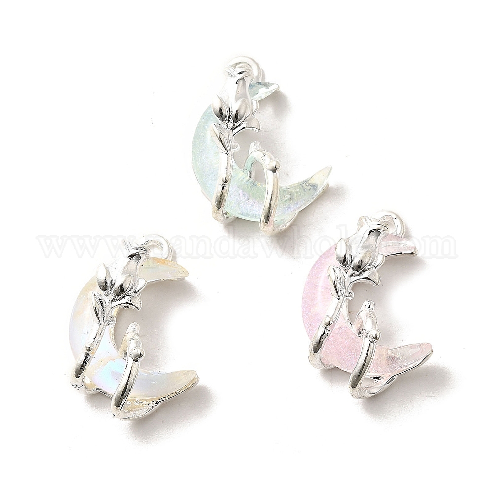 Подвески из сплава , луна с цветком, cmолой, стойки покрытие, без свинца, без кадмии и без никеля