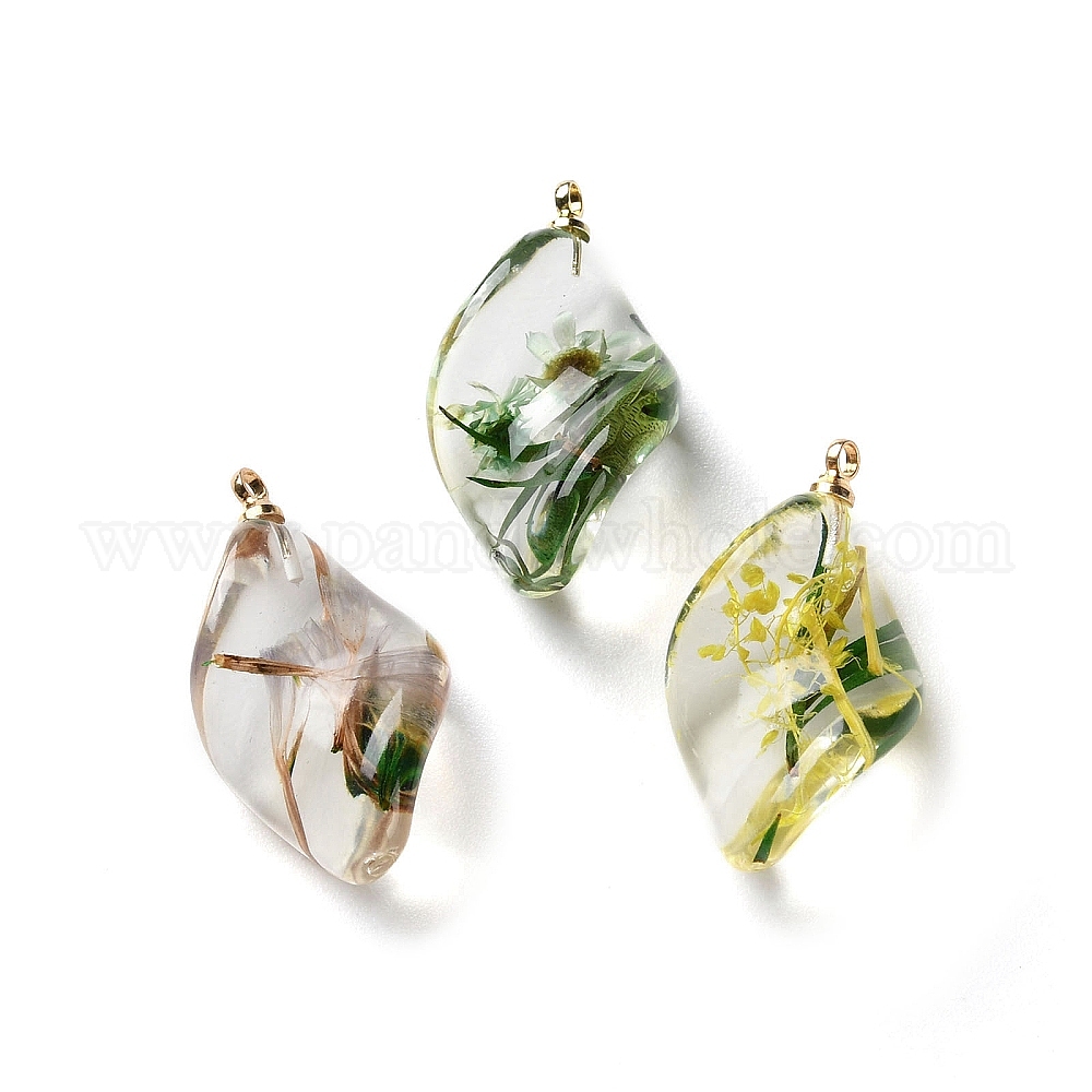 Подвески из прозрачной смолы с сухоцветами, с латунной найти, лист прелести