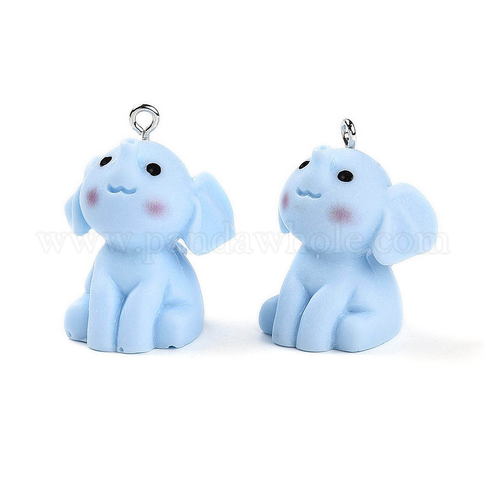 Непрозрачные подвески смолы, талисманы теленка слона, с платиновыми железными петлями